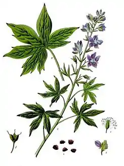 ![]() رسم توضيحي لنبات (باللاتينية: Delphinium staphisagria) | |
