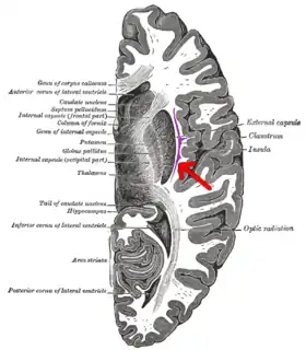 ![]() مستوى افقي من المخ. يشار إلى العائق بالسهم. مستوى افقي من المخ. يشار إلى العائق بالسهم. | |