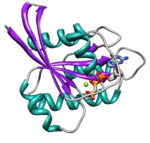 بروتين راس أيضا يحتوي [أيون المغنيسيوم] الذي يساعد على تنسيق ربط النوكليوتيدات.