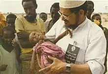 استمرت معه عادته وحرصه على الوقوف إلى جانب المعوزين وأصحاب الحاجة حينما شعر بخطر المجاعة يهدد المسلمين في أفريقيا، وأدرك انتشار حملات التبشير التي تنتشر صفوف فقرائهم في أدغال القارة السوداء، وعلى إثر ذلك آثر أن يترك عمله الطبي طواعية ليجسد مشروعاً تنموياً في مواجهة غول الفقر والجهل واستقطب معه فريقاً من المتطوعين الذين انخرطوا في تدشين هذا المشروع الإنساني الذي تتمثل معالمه في مداواة المرضى وتضميد جراح المنكوبين ومواساة الفقراء والمحتاجين والمسح على رأس اليتيم وإطعام الجائعين وإغاثة الملهوفين.[1]