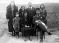 عبد الرحمن شهبندر في أوائل 1920 مع زوجته وابنته في منزله بدمشق..