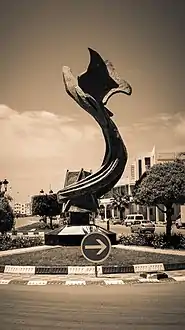 - تم تصميم النصب من قبل النحات التونسي عبد الفتاح بوستة