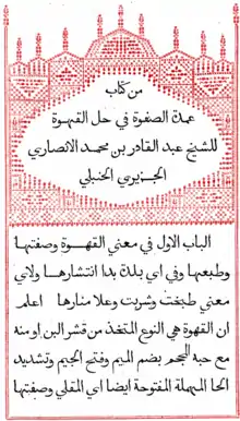 - عمدة الصفوة في حل القهوة للجزيري - الكتابدار نسخة محفوظة 09 فبراير 2018 على موقع واي باك مشين. [وصلة مكسورة]