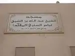 لافتة بداخل المسجد كُتبت فيها سيرة الستري.