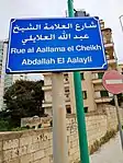 يافطة شارع العلامة الشيخ عبد الله العلايلي مقابل الحمام العسكري ببيروت