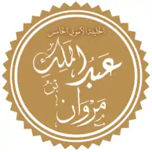 أبو الوليد عبد الملك بن مروان بن الحكم بن أبي العاص بن أمية القرشي (26 هـ - 86 هـ / 646 - 705م) الخليفة الخامس من خلفاء بني أمية والمؤسس الثاني للدولة الأموية.[4] ولد في المدينة وتفقه فيها علوم الدين، وكان قبل توليه الخلافة ممن اشتهر بالعلم والفقه والعبادة، وكان أحد فقهاء المدينة الأربعة، قال الأعمش عن أبي الزناد: «كان فقهاء المدينة أربعة: سعيد بن المسيب، وعروة بن الزبير، وقبيصة بن ذؤيب، وعبد الملك بن مروان».[5] استلم الحكم بعد أبيه مروان بن الحكم سنة 65 هـ الموافق 684م، وحكم دولة الخلافة الإسلامية واحدًا وعشرين عامًا.