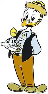 - هذا الاسم قدمته مجلة ميكي العربية الصادرة في مصر والأسم الكامل ذكر في مسلسل قصص بطوطية