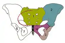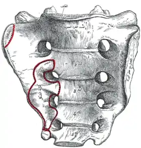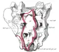 ![]() صورة حوض (تشريح). عظمة العجز في النصف. صورة حوض (تشريح). عظمة العجز في النصف. | |