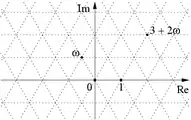 أعداد أيزنشتاين الطبيعية هي نقاط التقاطع في هاته الشبكة المثلثية في المستوى العقدي
