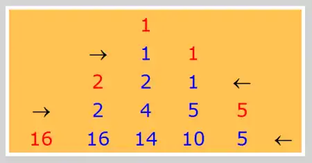 تعرف هذه المعادلة الأعداد النسبية Bm(n) لجميع الأعداد الصحيحة n ≥ 0, m ≥ 0. 00 التي يجب تفسيرها على أنها 1. يكون للتكرار أساسه في B0(n) = 1 لكل n. يأتي الاختلافان الآن بوضع n = 0 على الترتيب n = 1. إضافة لذلك يتم تبسيط الترميز بحذف المرجع للمتغير n.