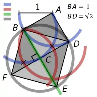 from the length unit, we can construct قطعة مستقيمة of length √2 with straightedge and compass.