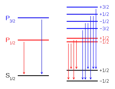 ويظهر طيف البناء الدقيق للهيدروجين على هيئة خطين يمثلان حالتين ممكنتين لمتجه عزم الدوران، حيث ينطبق على الاتجاه z :