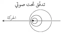 إذا كان ()، فإنّ الطائرة، التي تمتلك سرعة أقلّ من سرعة تضخّم كرات الاضطرابات التي تُولّدها كل لحظة، توجد دائما داخل تلك التي وُلّدت سابقا. إنّها الظّاهرة التي يعرفها الجميع : يسمع المراقب الثابت الصوت ضعيفا جدا آتيا من من الكرات الأولى المتمدّدة جدّا، ويشتدّ الصّوت حتى تكون الطائرة قريبة جديدة ثم ينخفض من جديد حتّى يفنى.