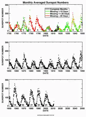 |CitationClass=تم تجاهله (مساعدة) - SIDC, RWC Belgium, World Data Center for the Sunspot Index, المرصد الملكي (بلجيكا), 'year(s)-of-data'. نسخة محفوظة 28 ديسمبر 2017 على موقع واي باك مشين.