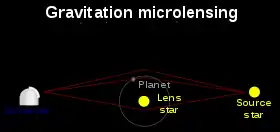 إذا كان للنجم الذي يحدث العدسية الصغرية كوكبا ويكون هذا الكوكب قريبا من مسار شعاع آتي إلينا من نجم خلفه ، فإن مقياس اللمعان في تلسكوبنا يسجل منحنى ضوئيا لهذا اللقاء . يرتفع شدة الضوء رويدا رويدا ثم تنخفض بسبب تاثير العدسة الجذبية للنجم الوسطي ، وبين زيادة شدة اللمعان وانخفاضها تأتي فترة تصل فيها شدة اللمعان إلى قمة تبقى لمدة ربما يوم واحد . بالفعل ترصد أمثال ذلك الحدث وهي نتيجة قرب الكوكب المكتشف من مسار أشعة الضوء الآتية من مصدر خلفه بعيد . وتقل شدة الضوء ثانيا بعدما يبتعد الكوكب في مداره عن النقطة التي حدث فيها تغيير في مسار أشعة الضوء (أنظر كوكب خارج المجموعة الشمسية) .