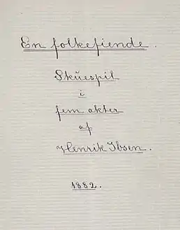 ![]() مخطوطة الغلاف بقلم إبسن، كُتِبت في 1882. | |