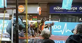 - داخل الصالات، يتم هذا السباق كحلقة واحدة من المضمار، مع أوقات أبطأ قليلاً فقط مما يجري في الخارج.