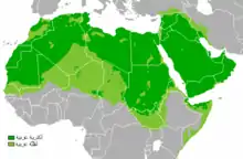 تعد اللغة العربية - السمة المشتركة الرئيسية بين العرب - إحدى اللغات السامية الناشئة في الجزيرة العربية، ومنها انتشرت إلى مجموعة متنوعة من الشعوب في معظم أنحاء غرب آسيا وشمال أفريقيا،[102] مما أدى إلى اندماجهم ثقافيًا ومذهبيًا كعرب. كما يعد التعريب تحولاً ثقافيًا لغويًا، تزامن في كثير من الأحيان، ولكن ليس دائمًا، مع انتشار الإسلام.