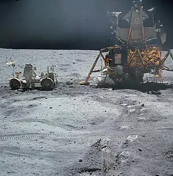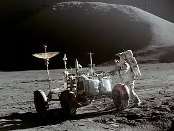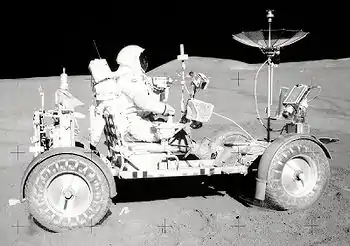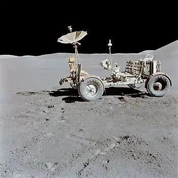وقد بدأ تصميم 'عربة القمر عام 1969 في معمل البحوث لشركة جنرال موتورز في سانتا باربارا، كاليفورنيا بعقد من شركة بوينغ للطيران. واستغرق تصميم وبناء العربة 17 شهرا. ويتميز تصميم عجل العربة باستطاعتها العمل بدون صعوبة في أصعب الظروف على سطح القمر - ولا تزال ثلاثة عربات منها مركونة على القمر.