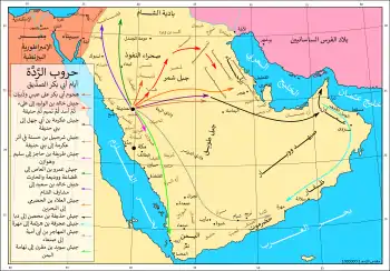 ، فكتب أبو بكر إلى عكرمة بن أبي جهل. أن سر فيمن قبلك من المسلمين إلى أهل دبا».[39][40]
