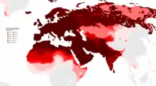 This third racial zone stretches from Spain across the Straits of Gibraltar to Morocco, and thence along the southern البحر الأبيض المتوسط shores into شبه الجزيرة العربية, شرق أفريقيا, بلاد الرافدين, and the الهضبة الإيرانية; and across أفغانستان into الهند [...] The Mediterranean racial zone stretches unbroken from إسبانيا across the مضيق جبل طارق to المغرب, and thence eastward to India[...] A branch of it extends far southward on both sides of the البحر الأحمر into southern Arabia, the مرتفعات إثيوبيا, and the القرن الأفريقي.