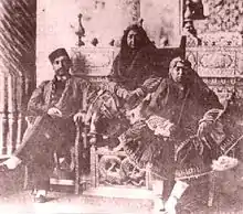 ![]() عزت الدولة إلى اليمين مع أمها مهد عليا وأخيها ناصر الدين شاه القاجاري | |