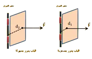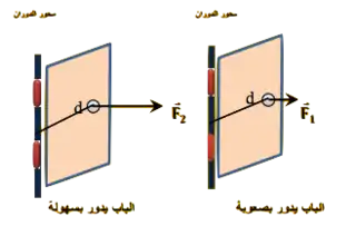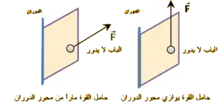 ينعدم عزم القوة إذا كان حامل القوة مارا في محور الدوران أو موازيا له بحيث لا يتقاطعان