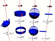 حيث:M كتلة الجسم:R نصف القطر من مركز الكتلة إلى المحور:k ثابت ليس له بعد يدعى بـ ثابت القصور ويتغير مع شكل الجسم.
