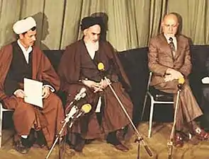 روح الله الخميني وصادق قطب زاده - خطاب في قاعة مدرسة علوي - 2 فبراير 1979.