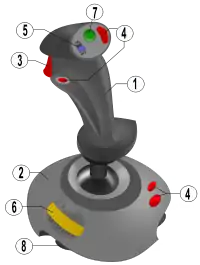 عصا التحكم نوع قديم نسبيا كان يستخدم سابقا في الألعاب البسيطة التي تتطلب الحركة البسيطة للاتجاهات الاربعة وزر أو زرين يستخدمان مثلا (للقفز وإطلاق النار) أو (إطلاق نار إلى الامام وإطلاق نار للخلف) أو - كما في لعبة التنس مثلا- زر لضرب الكرة للامام وبقوة وزر لضرب الكرة عاليا ومقوسة.. الخ من الامثلة على هذا النوع البسيط من عصا التحكم.