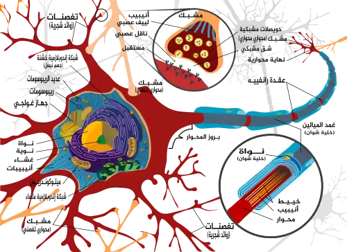 - المحور العصبي (أو المِحْوَار[2]) (بالإنجليزية: axon).
