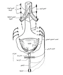 ![]() مسار العصب الفرجي وتفرعاته في الذكر | |