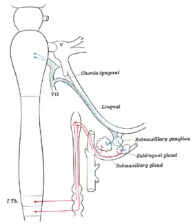 | تزويد عصبي | غدة تحت الفك السفلي، غدة تحت اللسان |