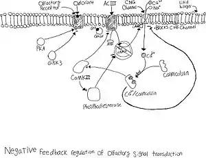لدى الأعصاب الحسية الشمية استجابة مرتجعة سريعة بمجرد زوال الاستقطاب. فعندما يكون العصبون غير مستقطب، تكون القنوات مفتوحة مما يسمح للصوديوم والكالسيوم بالتسرب داخل الخلية، حيث يُفعل تدفق الكالسيوم سلسلة من الأحداث داخل الخلية، وتؤدي هذه الاستجابة المرتجعة إلى تثبيط العصبون عن مزيد من التنشيط عند إدخال جزيء رائحة آخر.