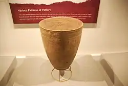 كان يتم الرسم على الفخاريات على نمط معين باستخدام أمشاط مصنوعة من العظام كما أنه من الممكن أن يتم خلط العديد من الأنماط لرسمها على الفخار. كما صنعت الفخاريات في هذه الفترة من مسحوق الخشب والعظام أو العديد من المواد الأخرى حيث يتم رسم النقوش عليها وهي تشبه الأوعية بخطوط قصيرة. تتميز هذه الفخاريات بخطوط قصيرة في اتجاه واحد أو اتجاه متبادل لتشكل ما يشبه عظام السمك.