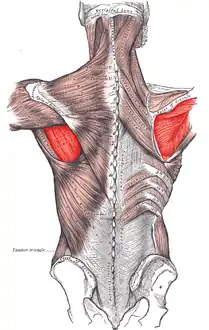 ![]() العضلات الواصلة بين الطرف العلوي بالعمود الفقري.(العضلتان تحت الشوكة اليمنى تظهران باللون الأحمر الفاقع) العضلات الواصلة بين الطرف العلوي بالعمود الفقري.(العضلتان تحت الشوكة اليمنى تظهران باللون الأحمر الفاقع) | |