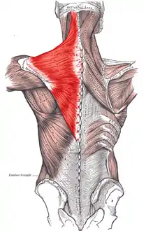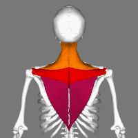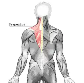 ![]() العضلات الواصلة بين الطرف العلوي والعمود الفقري. العضلة شبه المنحرفة اليسرى تظهر في الأعلى على اليسار العضلات الواصلة بين الطرف العلوي والعمود الفقري. العضلة شبه المنحرفة اليسرى تظهر في الأعلى على اليسار | |