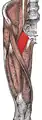 العضلة العانِية مبينة باللون الأحمر.