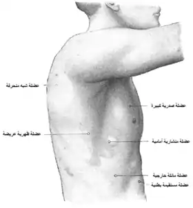 ![]() الجانب الأيسر من الصدر. الجانب الأيسر من الصدر. | |