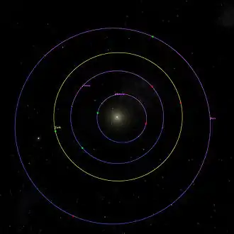 | الميل المداري | 7.005° بالنسبة لمسار الشمس 3.38° بالنسبة لخط الاستواء 6.34° بالنسبة إلى مستو ثابت[2] | ||||