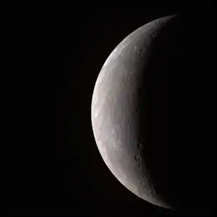 ![]() صورة لعطارد بألوان مُحَّسِنة التقطها المسبار الفضائي مسنجر في 2008 | |||||