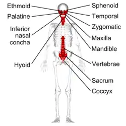 ![]() العظام غير المنتظمة في الهيكل العظمي. (تظهر باللون الأحمر). العظام غير المنتظمة في الهيكل العظمي. (تظهر باللون الأحمر). | |
