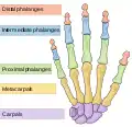 - الرسغ (بالإنجليزية: Carpal)ويضم 8 عظام تشكل صفين بكل واحد 4 عظام.