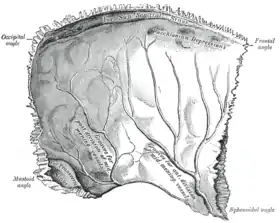 ![]() ’’’الصورة الأولى’’’ وتظهر السطح الخارجي للعظم الجداري الأيسر. | |