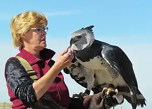 العقاب المخادع أو النسر الخطاف[4] هو طائر جارح يستوطن في الامريكيتين وهو من أشهرها في قارته. ويعد من أضخم أنواع العقبان وهو أقوى أنواع الطيور الجارحة في العالم. وهو طائر كبير يُعد من الطيور المفترسة، يعيش في الأراضي المنخفضة من الغابات المدارية ويعيش جنوبي المكسيك وشرقي بوليفيا وجنوبي البرازيل وشمالي الأرجنتين. ويزن 9 كجم ويصل ارتفاعُهُ إلى 90سم وطول جسمه متر واحد. ويستطيع حمل فريسة تماثل وزن جسمه. ويصل طول جناحيه عند بسطهما إلى مترين وهما مقوسًا الحافة ليتمكن من المناورة بين الأشجار الكثيفة. وثخانة أقدامه تماثل محيط رسغ الرجل. ومخالبه بطول مخالب الدب الرمادي. وهي المخالب الأطول بين كل أنواع العقبان. وهو يقوم بالإطباق على فريسته بأقدامه بقوة تساوي 3 أضعاف عضة الكلاب الألمانية. وتبني هذه العقبان أعشاشًا كبيرة من الأعواد على الأشجار . وأعشاشها بثخانة متر وعرض مترين. وتتكاثر الأزواج كل سنتين وتضع الإناث من بيضة إلى بيضتين. والإناث أضخم حجما من الذكور.