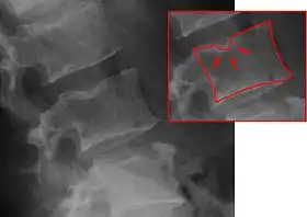 ![]() صورة بالأشعة السينية لعقد شمورل في الفقرات القطنية. | |
