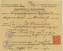 شهادة زواج صادرة باللغة الروسية في عام 1907