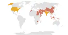 - آسيا والمحيط الهادئ (15 بلدا): 'أفغانستان' (6) وبنغلاديش (10) والصين (عدد غير معروف) وإندونيسيا (4) وإيران (567+) والعراق (88+) واليابان 3)، ماليزيا (9)، كوريا الشمالية (عدد غير معروف)، باكستان (87+)، دولة فلسطين (3 [سلطات حماس، غزة])، السعودية (154+)، سنغافورة (4) ، فيتنام (عدد غير معروف)