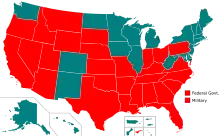 يتناسب توزيع أحكام الإعدام بين الولايات بشكل كبير مع سكانها ومعدلات القتل فيها. تملك كاليفورنيا -الولاية الأكثر اكتظاظا بالسكان- أيضا أكبر معدلات لحالات الإعدام مع أكثر من 700 سجين، وتملك ولاية وايومينغ -وهي أقل ولاية من ناحية عدد السكان- رجلًا واحدًا مدانًا فقط.