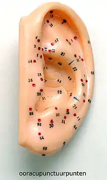 |CitationClass=تم تجاهله (مساعدة) - "Chinese Auriculotherapy Chart" (PDF). مؤرشف من الأصل (PDF) في 8 سبتمبر 2017. اطلع عليه بتاريخ 19 يوليو 2014. الوسيط